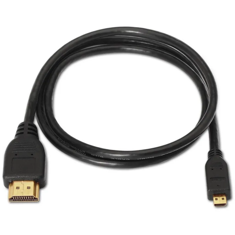 - Cable HDMI alta velocidad con Ethernet (V1.4) con conector tipo A macho en un extremo y conector tipo D (Micro HDMI) en el otro.