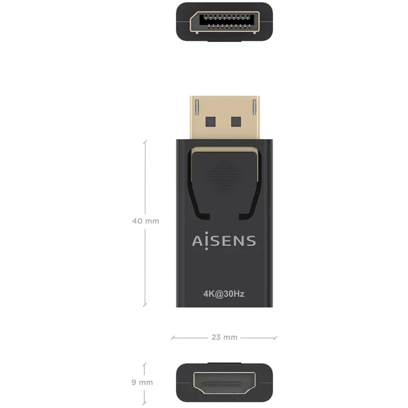 Aisens A125-0949 Conversor DISPLAYPORT a HDMI 4K30HZ, DP/M-HDMI/H, Negro