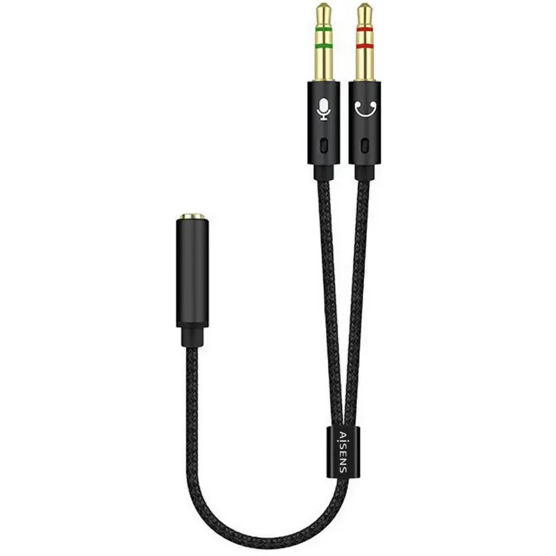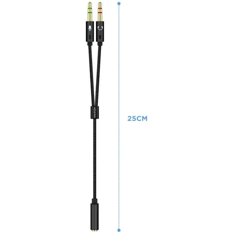 Aisens A128-0418 Adaptador de Audio Jack 3.5 mm 4 Pines a Jack 3.5 mm 3 Pines 25 cm Negro