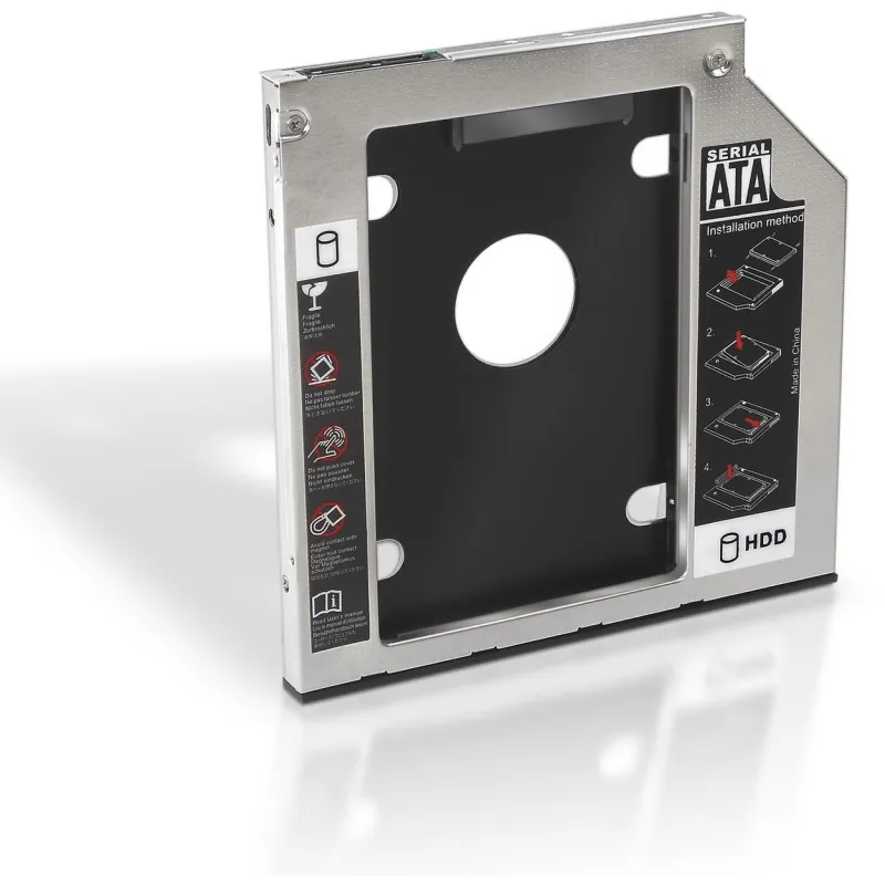 - Adaptador SATA para instalar un disco duro 2.5” de 7,0mm de grosor en la unidad óptica portátil. Incluye tornillos para montaje. Este adaptador te permite añadir un disco duro en un portátil con unidad de óptica de 9,5mm de grosor