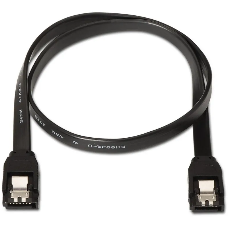 AISENS® – Cable SATA III datos 6G con anclajes, negro, 0.5 metros para disco duro SATA I, II, III SSD.