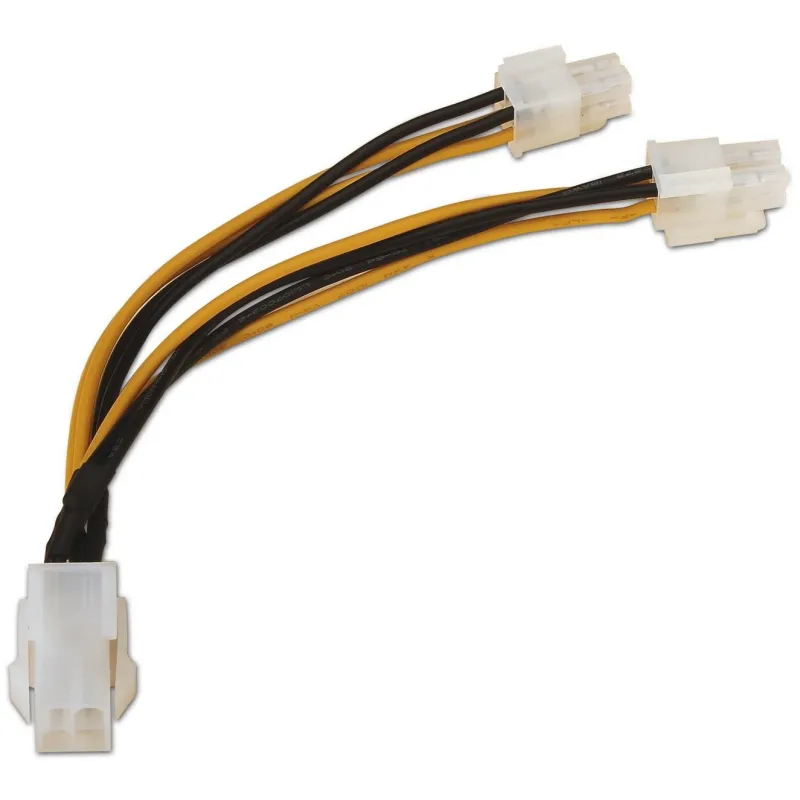 - Cable de alimentación para convertir conector 4 pin a 4+4 pin para alimentar el microprocesador.