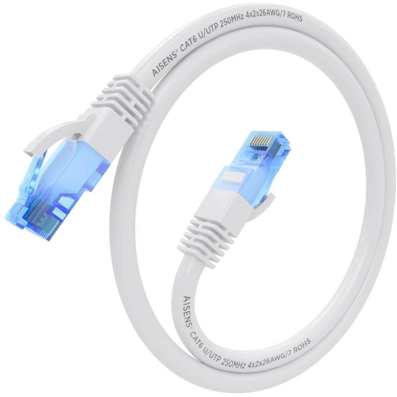 Cable de Red Aisens A135-0815 en color blanco , con alta velocidad (1000 Mbit/s),  25 cm de longitud ,diseño compacto RoHS e ideal para conexiones fiables.