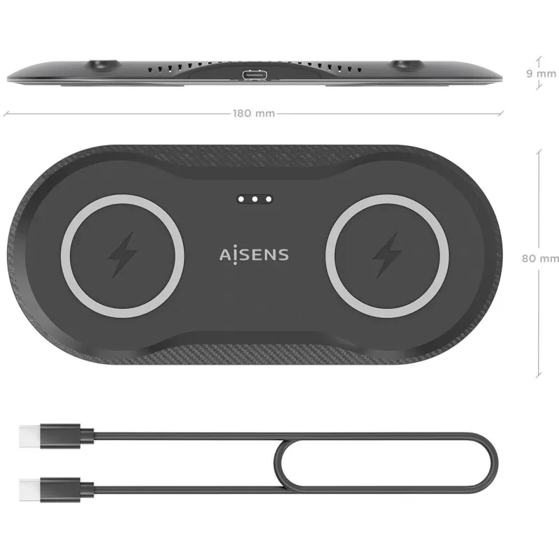 Aisens ASCH-15W2WC060-BK Cargador Inalámbrico USB-C 2 en 1 15W Negro