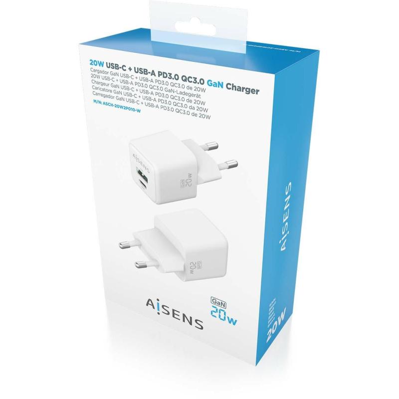 Aisens ASCH-20W2P010-W Cargador USB-A/USB-C 20W Blanco