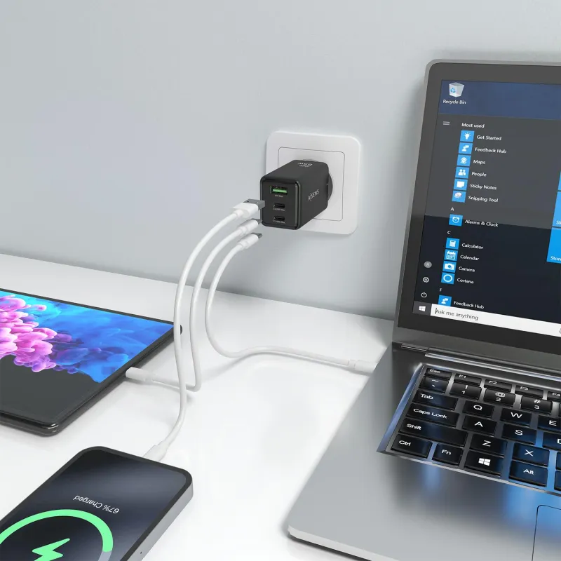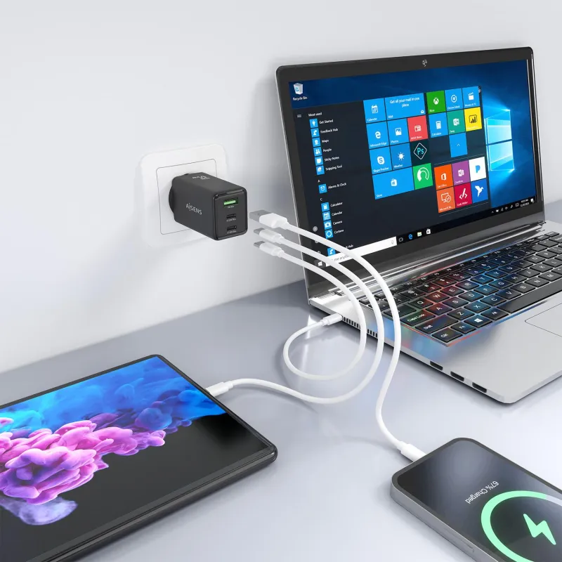 Cargador de Móvil Aisens ASCH-65W3P073-BK con tecnología GaN, carga rápida Power Delivery 3.0 y hasta 65 W para múltiples dispositivos