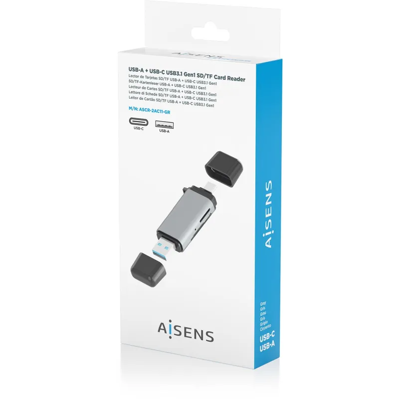 Aisens ASCR-2AC11-GR SD MicroSD MMC RS-MMC USB-A USB-C Gris
