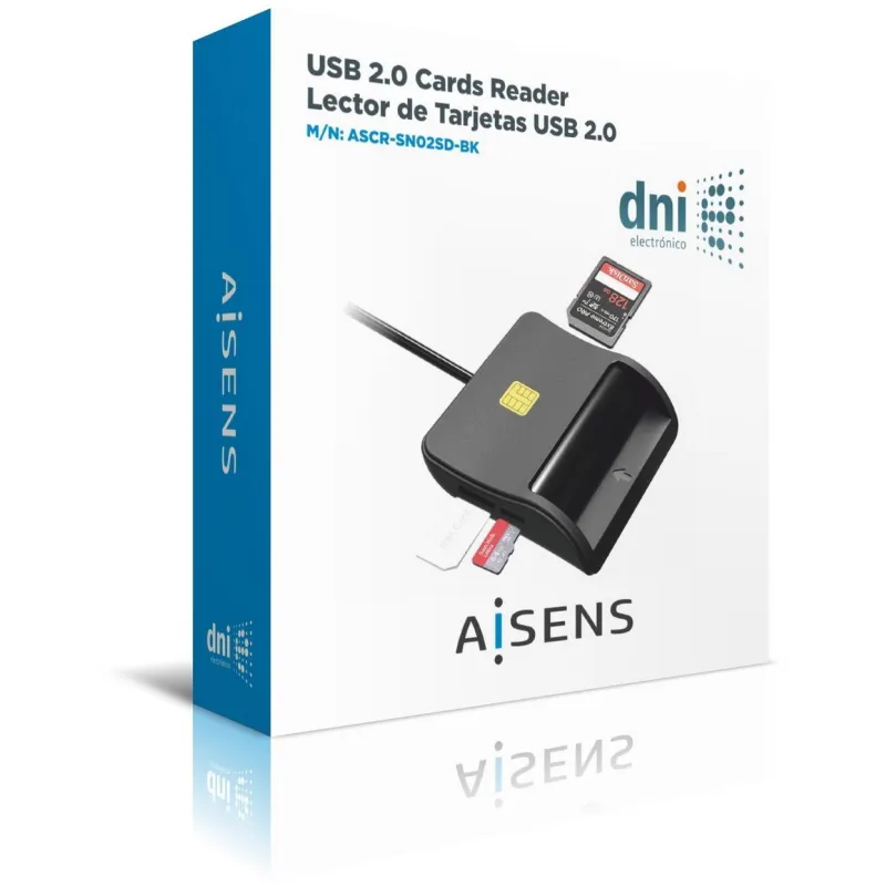AISENS® – Lector de Tarjeta Inteligente DNI con Lector de Tarjetas SIM, SD, Micro SD, MMC, RS-MMC, MMC Micro, Negro