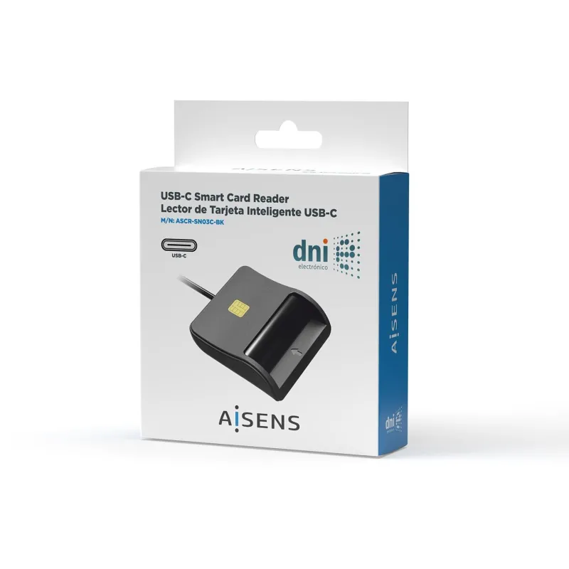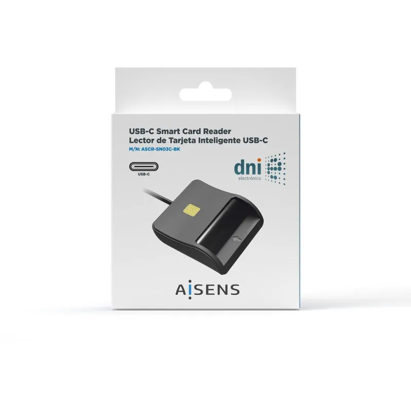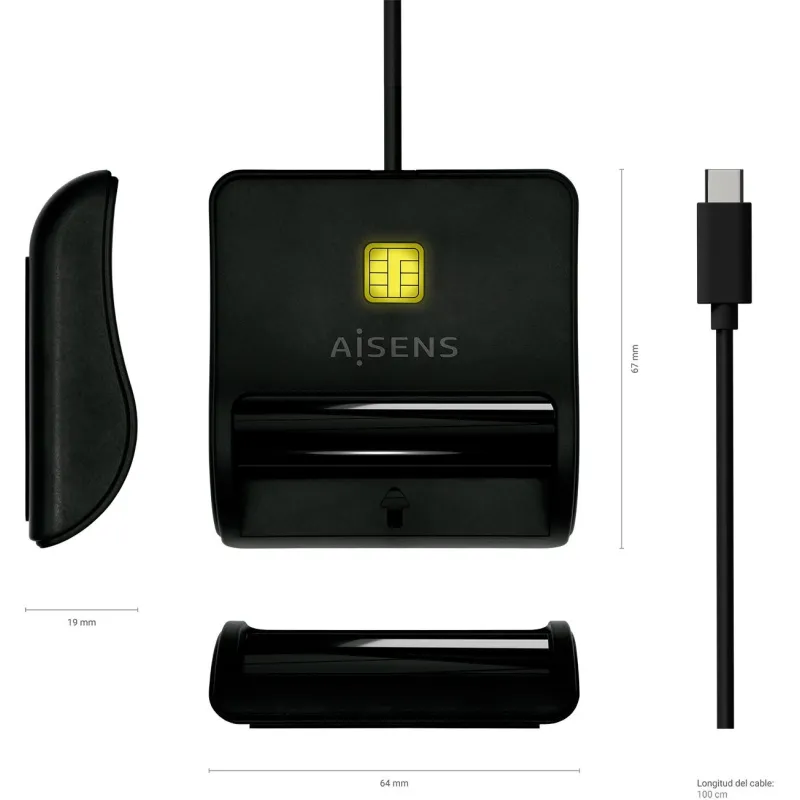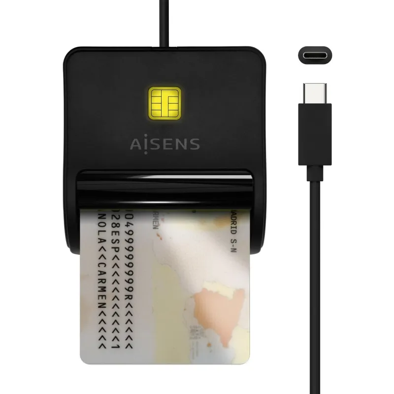 AISENS® – Lector de Tarjeta Inteligente DNI USB-C, Negro.
