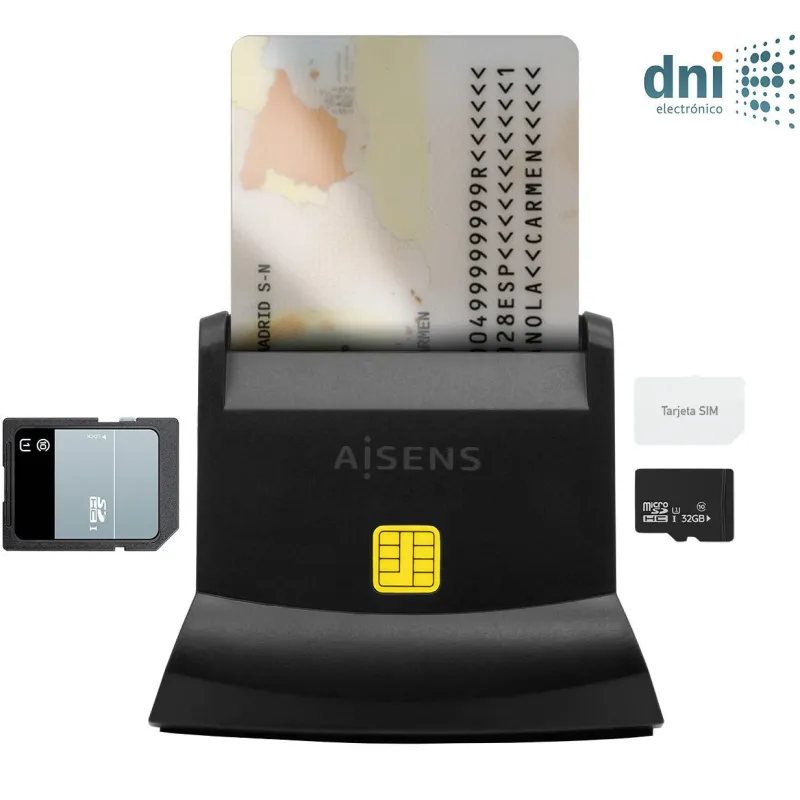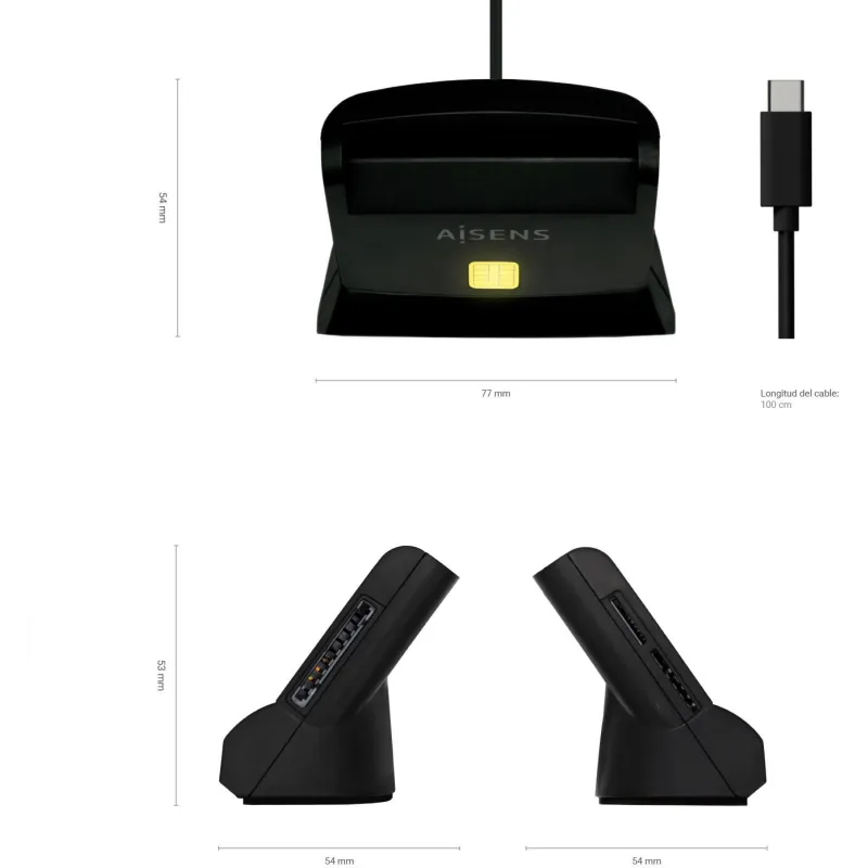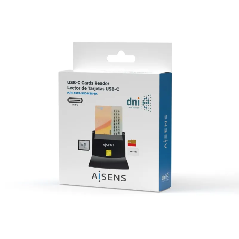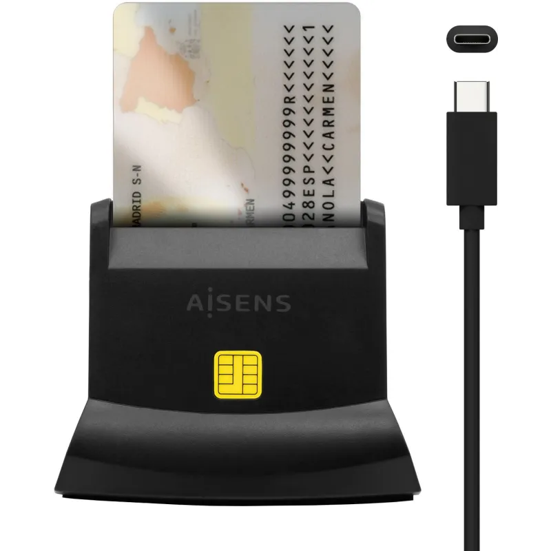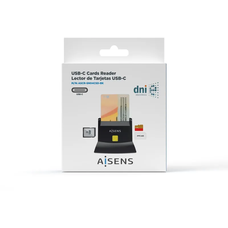 AISENS® – Lector de Tarjeta Inteligente DNI USB-C con Lector de Tarjetas SIM, SD, Micro SD, MMC, RS-MMC, MMC Micro, Negro