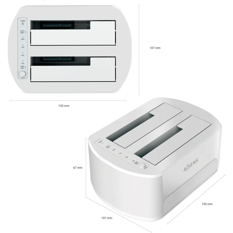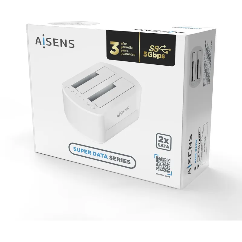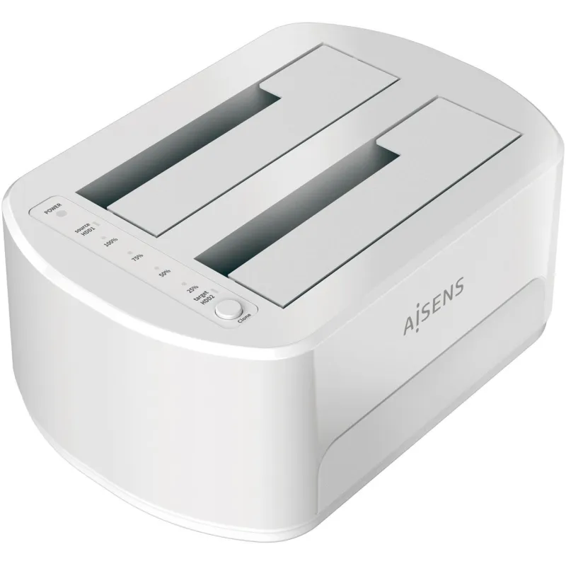 AISENS® – Estacion de Docking de Doble Bahia ASDS-D02W SATA 2.5/3.5 a USB 3.0/3.1 Gen1, Clone, Blanca.