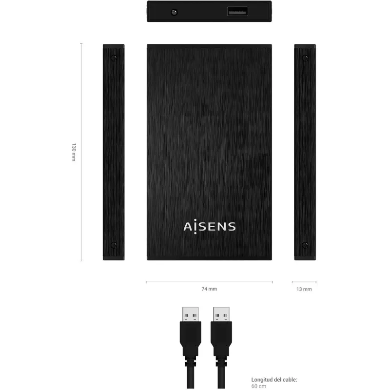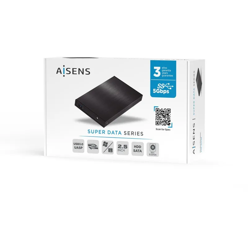Diseñada en color negro y fabricada con aluminio, la caja es resistente y duradera, contando además con indicadores LED para una visualización rápida del estado de la conexión. Ofrece una velocidad de transferencia de datos de hasta 5 Gbit/s y es compatible con sistemas de archivos FAT32, HFS, NTFS y ext2. El soporte para UASP garantiza un rendimiento superior y la funcionalidad Plug and Play facilita su uso inmediato sin necesidad de instalación adicional.