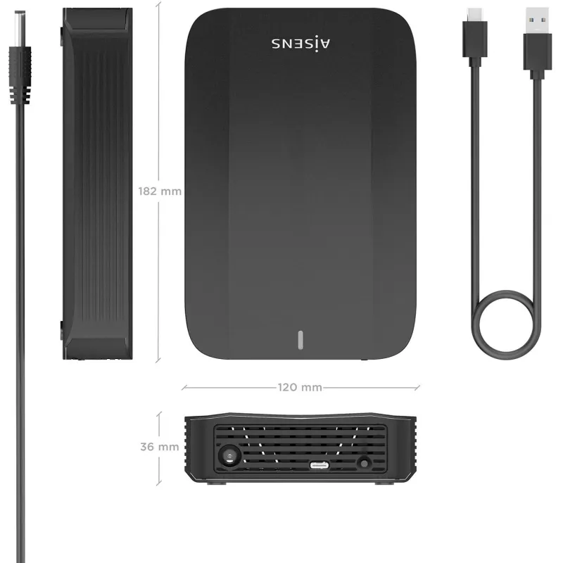 La Unidad de Expansión Aisens ASE-3535B está equipada con alimentación mediante corriente alterna y continua, lo que garantiza un suministro energético estable incluso en sesiones de uso intensivo. Incluye un adaptador de corriente externo de 12V y 2A, así como accesorios esenciales como cables USB tipo C a tipo A, tornillos, destornillador y manual de usuario. Esta caja es compatible con múltiples sistemas de archivos, como FAT32, HFS, NTFS y ext2, lo que la convierte en una opción versátil tanto para usuarios de Windows 7, 8, 10 y 11 como para quienes utilizan Mac. Gracias al soporte UASP, se optimiza el rendimiento de lectura y escritura, reduciendo la latencia. Con un peso de solo 600 g y un diseño compacto, esta unidad es ideal para quienes necesitan movilidad sin renunciar a la seguridad y rapidez de sus datos.