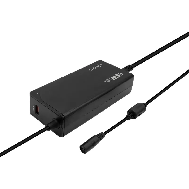 Aisens ASLC-65WAUTO-BK Cargador Portátil 65 W 9 Conectores + USB-A 1.2M Negro