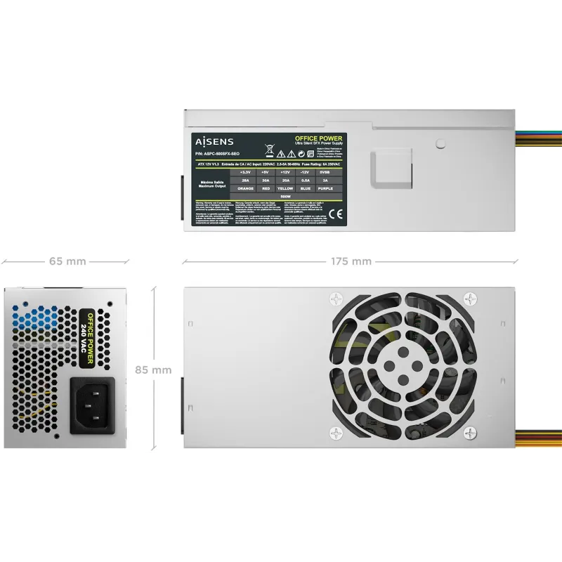 Fuente de Alimentación Aisens ASPC-500TFX-SEO OEM con conectores de energía SATA, fuente de alimentación TFX con protección avanzada.Ideal para servidores.