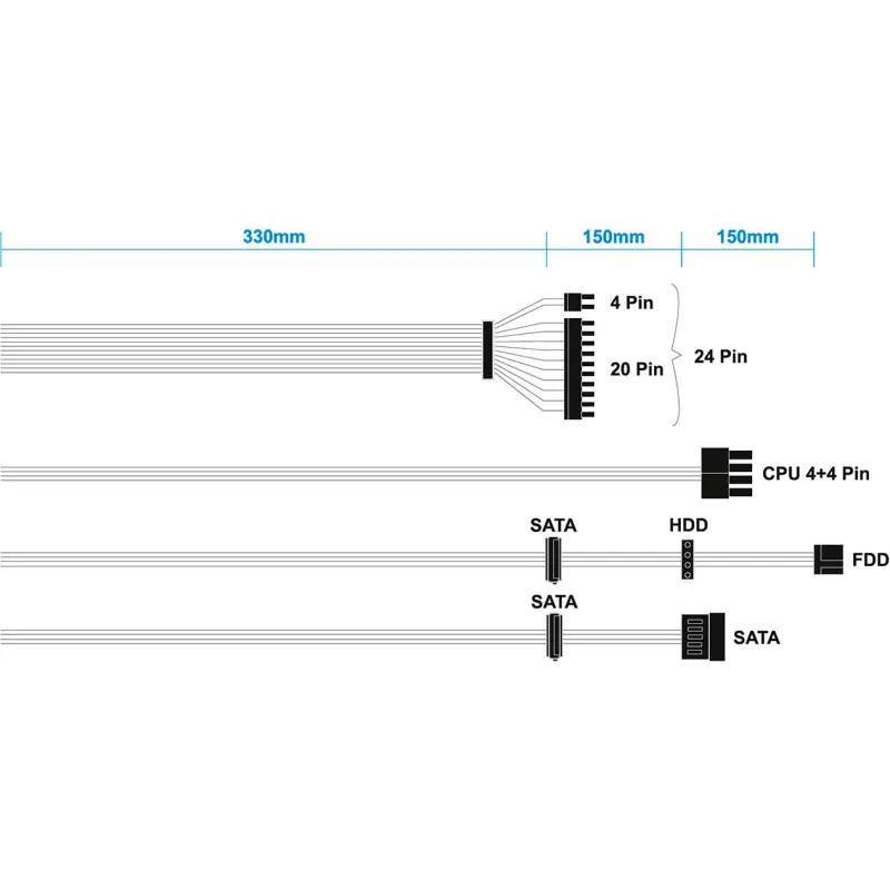 - Longitud del cable de alimentación SATA: 330,480 mm