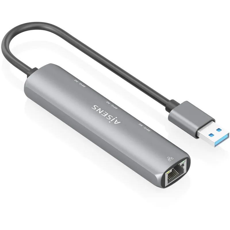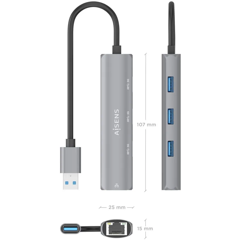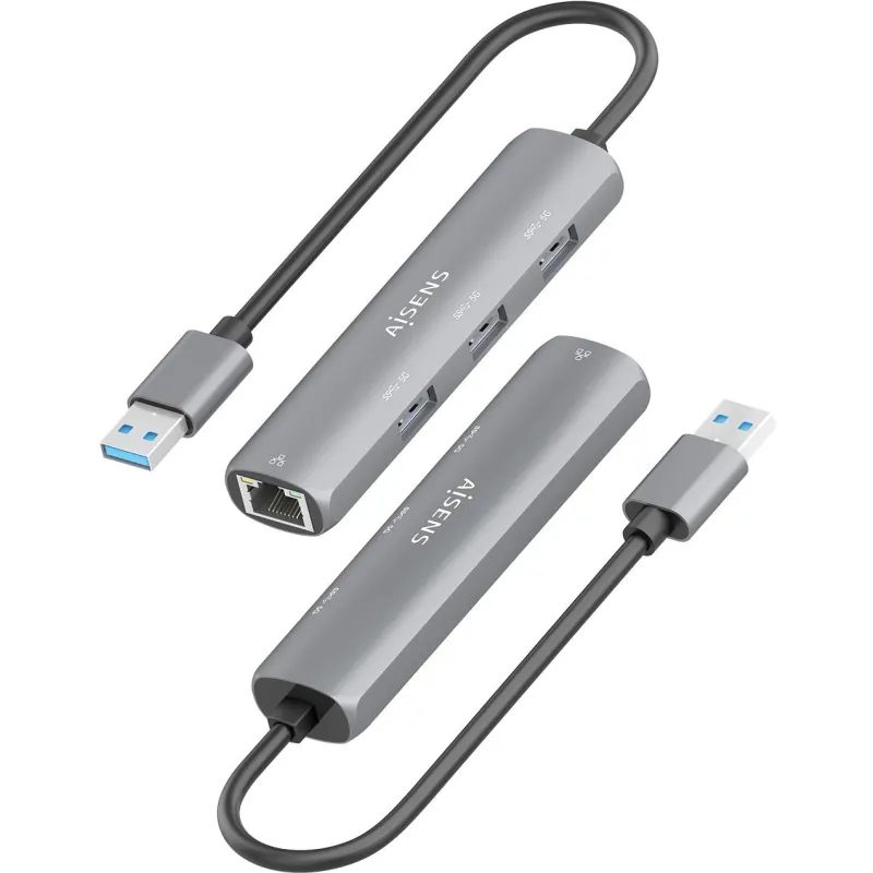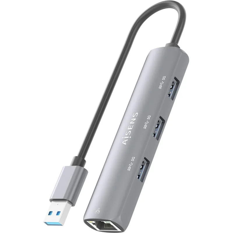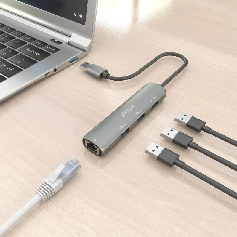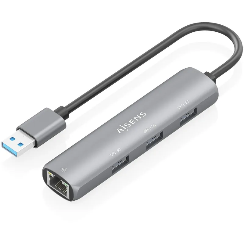 Docking Station Aisens ASUC-4P034-GR con USB 3.2 Gen 1 Type-A, 3 puertos USB, conexión Ethernet 1000 Mbit/s y compatibilidad multiplataforma