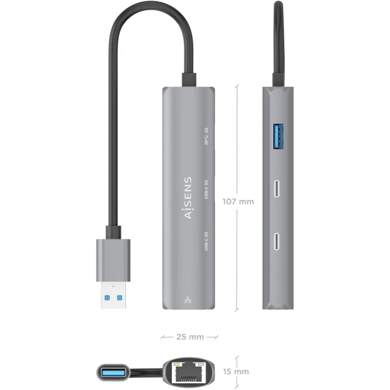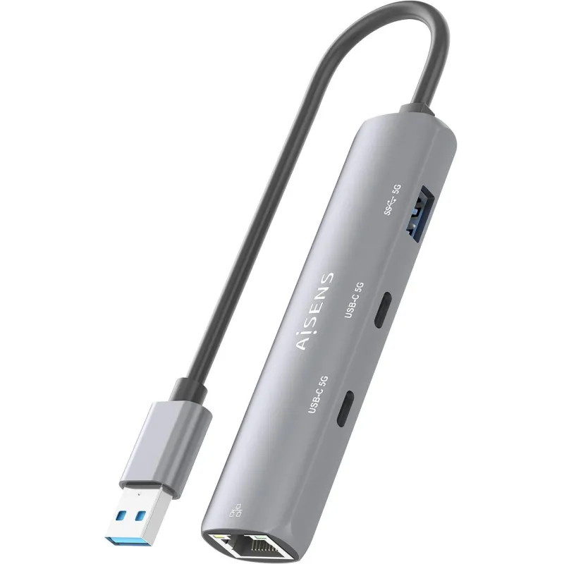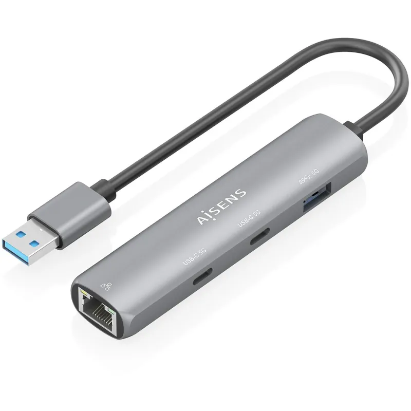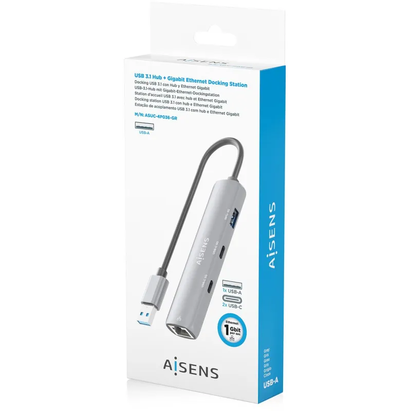 Docking Station Aisens ASUC-4P036-GR con USB 3.2 Gen 1 Type-C, velocidad de transferencia 1000 Mbit/s y conexión Ethernet LAN RJ-45