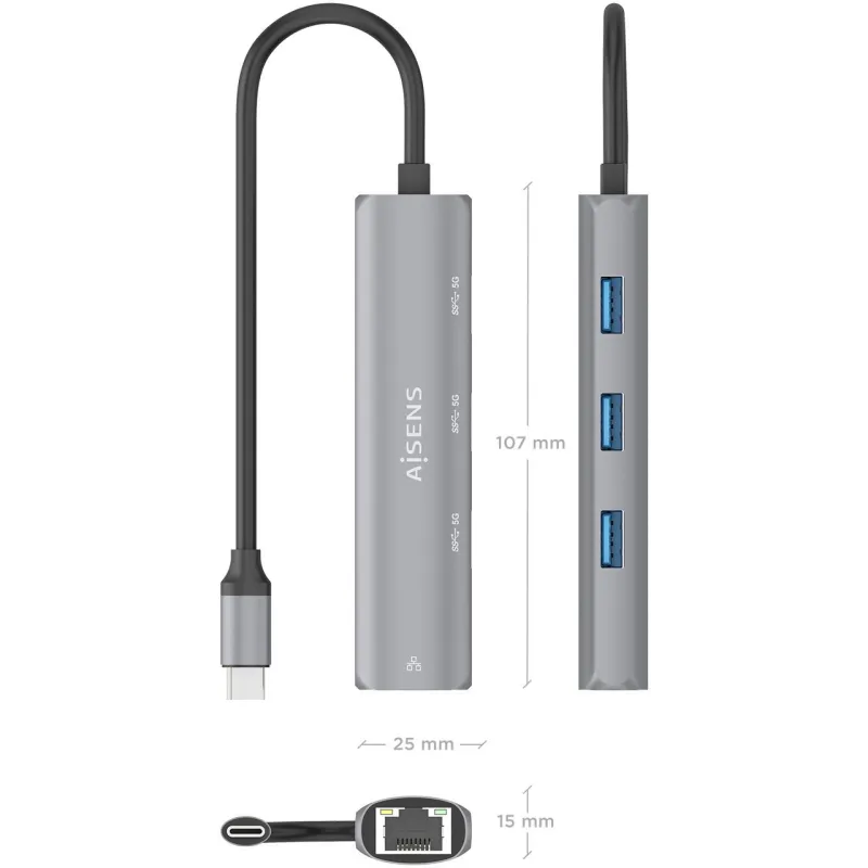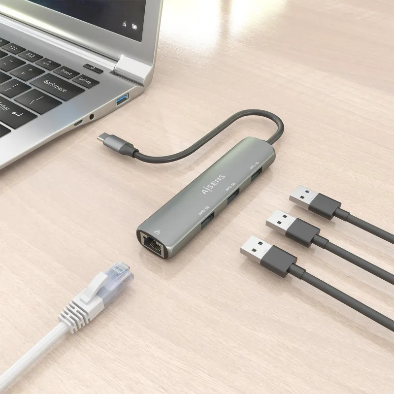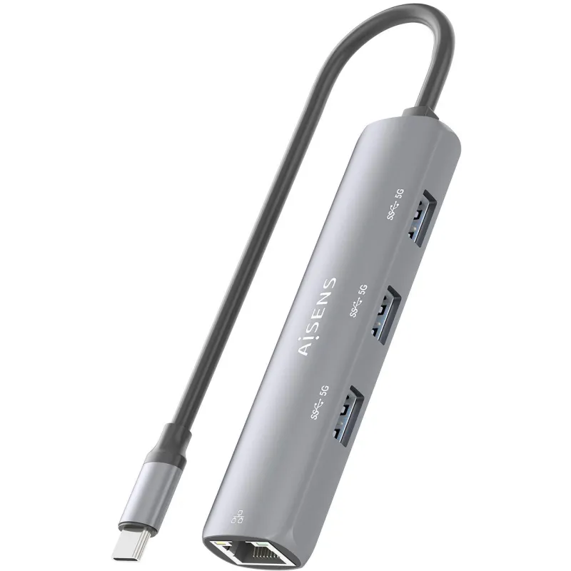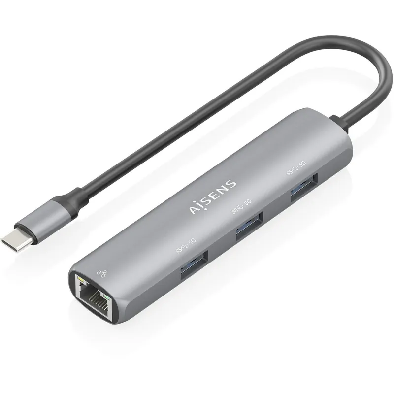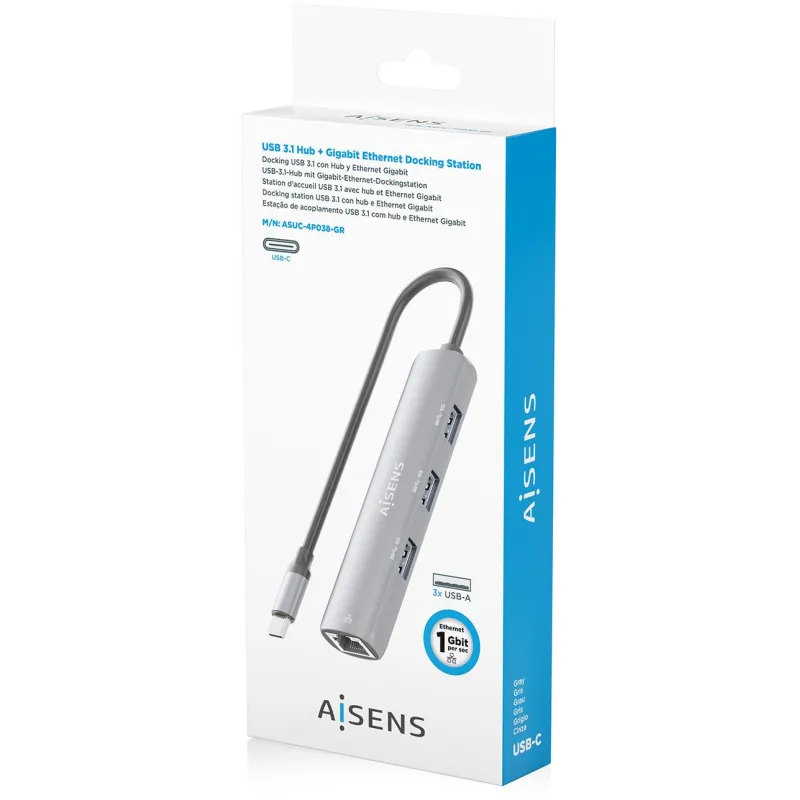 Docking Station Aisens ASUC-4P038-GR con USB 3.2 Gen 1 Type-C, 3 puertos USB, conexión Ethernet 1000 Mbit/s y compatibilidad multiplataforma