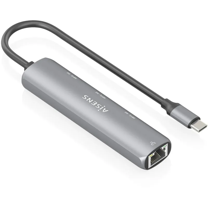 Aisens ASUC-4P038-GR Docking Station USB-C a Ethernet Gigabit + HUB 3x USB-A, Gris, 15cm