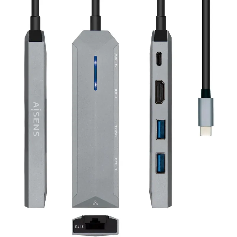 AISENS® – Conversor USB-C a 1xHDMI, 1xRJ45, 2xUSB, 1xPD 100W