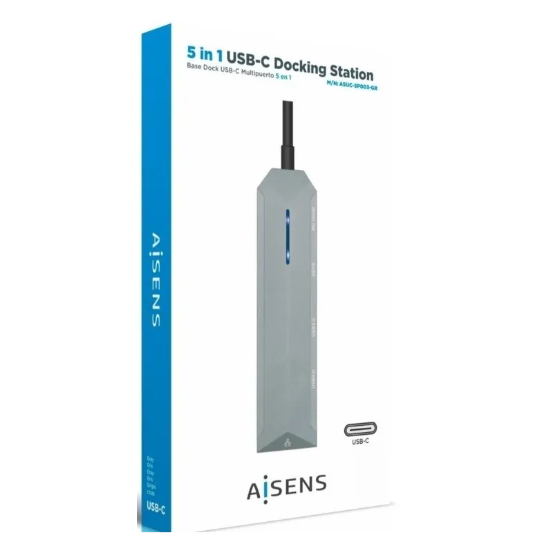 Aisens ASUC-5P003-GR Docking Station 5 Puertos USB-C a USB-A/USB-C/HDMI/RJ-45 15 cm Gris