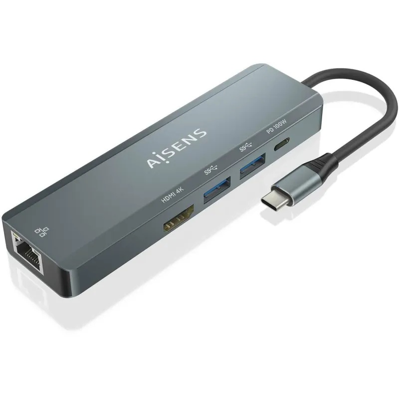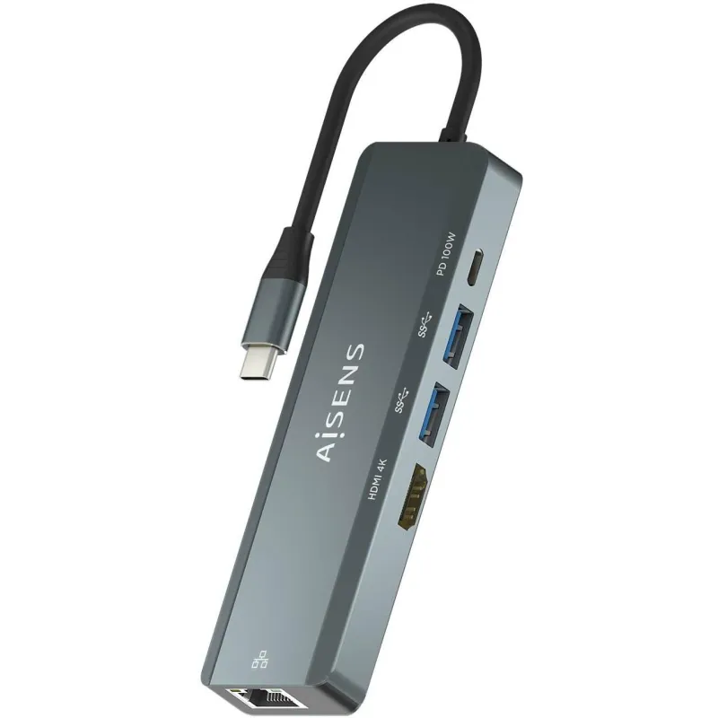 AISENS® – Conversor USB-C a 1xHDMI, 1xRJ45, 2xUSB, 1xPD 100W