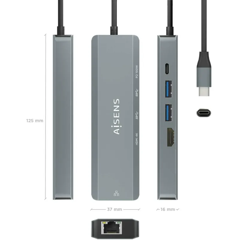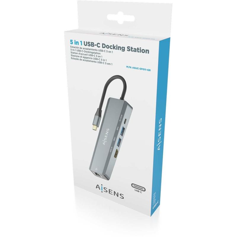 Aisens ASUC-5P011-GR Docking Station 5 Puertos USB-C a USB-A/USB-C/HDMI/RJ-45 15 cm Gris