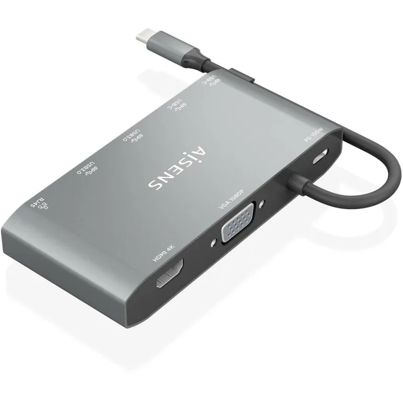 Aisens ASUC-8P010-GR Docking Station 8 Puertos USB-C a USB-A/USB-C/HDMI/RJ-45/VGA 20 cm Gris