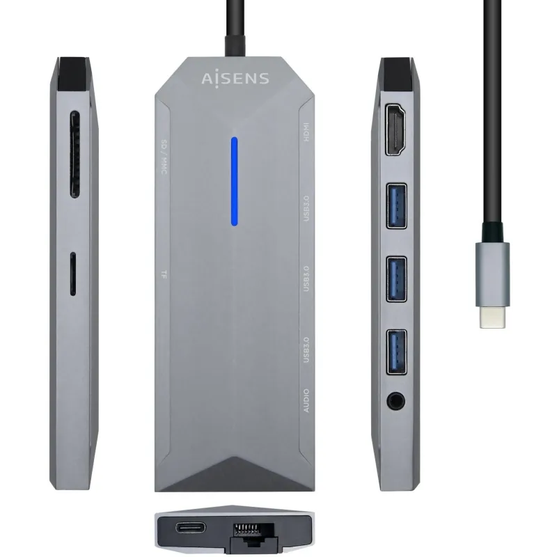 AISENS® – Conversor USB-C a 1xHDMI, 1xRJ45, 3xUSB, 1xPD 100W, 1xAUDIO 3.5mm, 1xLector de tarjeta SD, 1xLector de tarjeta MICRO SD
