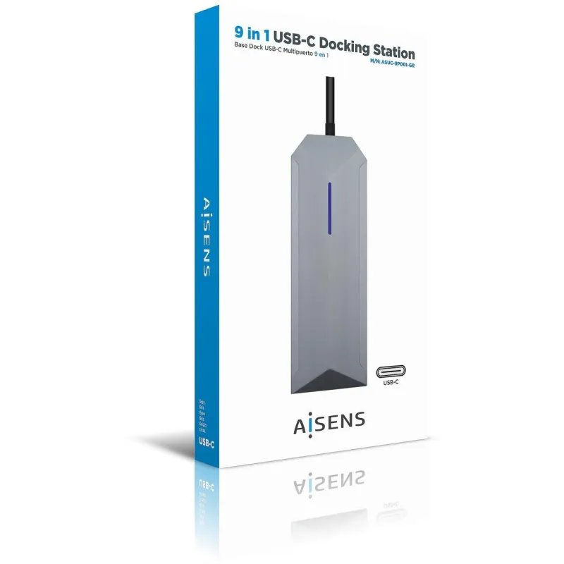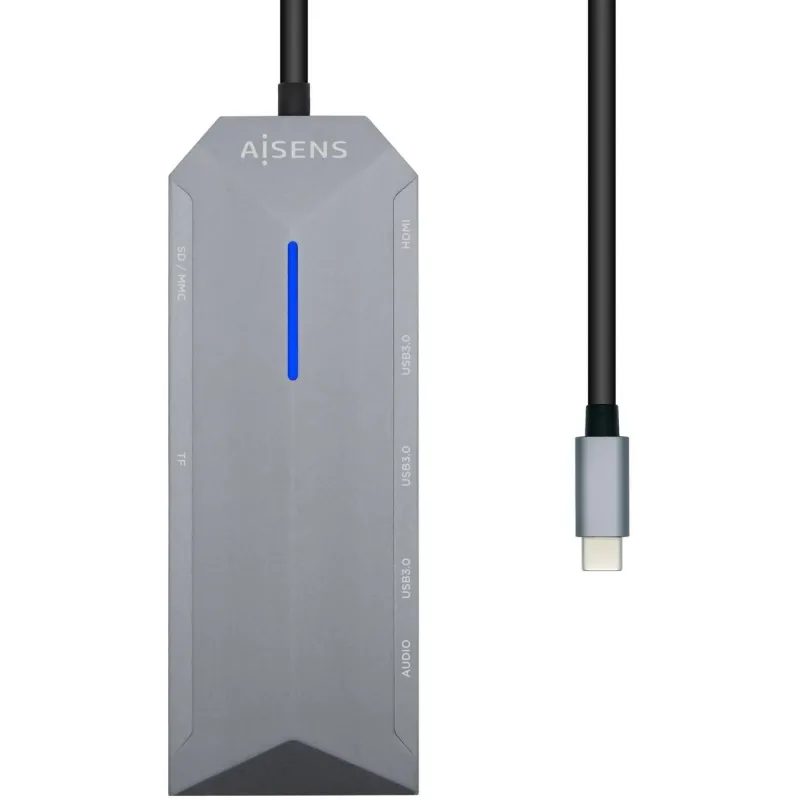 Aisens ASUC-9P001-GR Docking Station 9 Puertos USB-C a USB-A/USB-C/RJ-45/SD/microSD/Jack 3.5mm 15 cm Gris