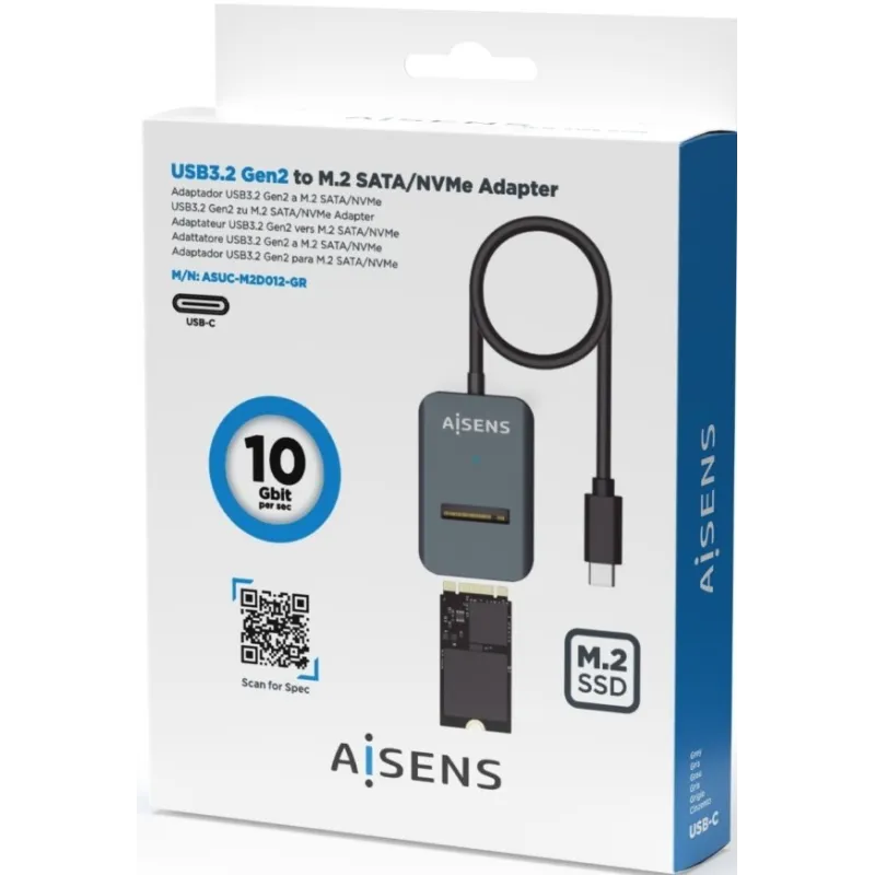 AISENS - USB-C DOCK M.2 (NGFF) ASUC-M2D012-GR SATA/NVME A USB3.1 GEN2, Gris