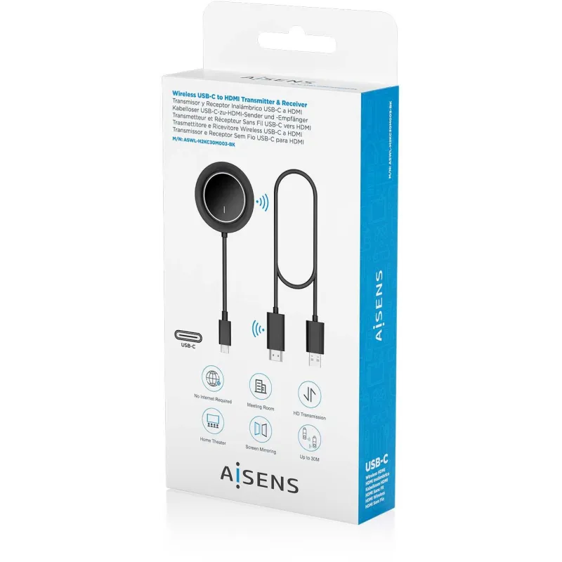 Aisens ASWL-H2KC30M003-BK Transmisor Inalámbrico USB-C a HDMI FullHD