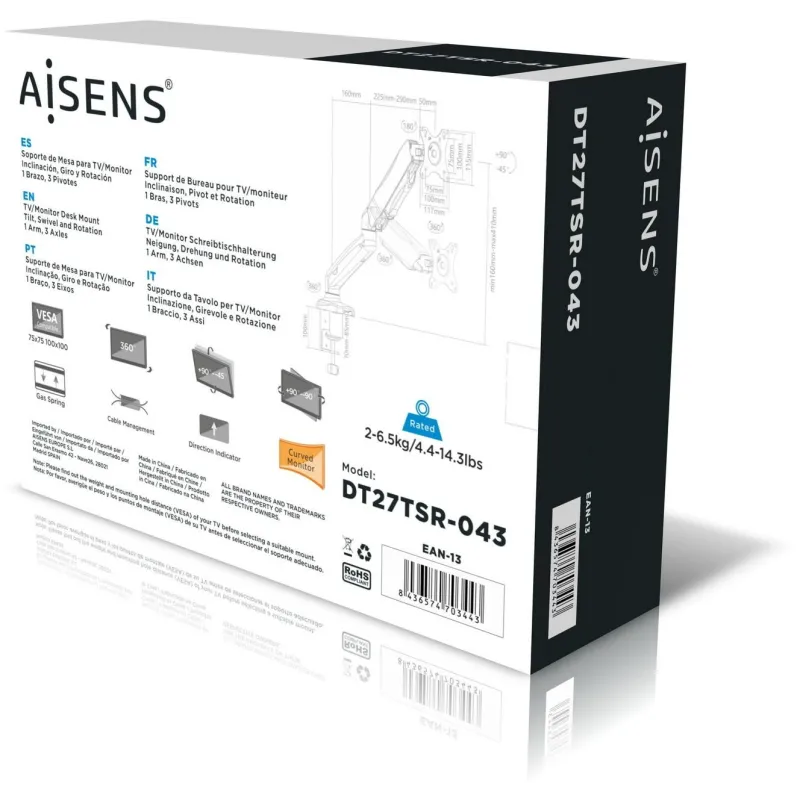 Aisens DT27TSR-043 Soporte de Mesa para Monitor/TV 13"-32" Máx. 9KG