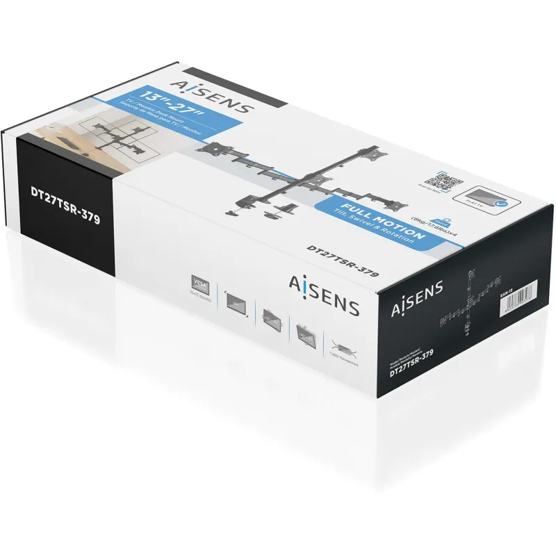 Soporte Aisens DT27TSR-379 para pantallas de hasta 27 pulgadas, con ángulo de rotación 180°, gestión de cables y capacidad para 4 monitores