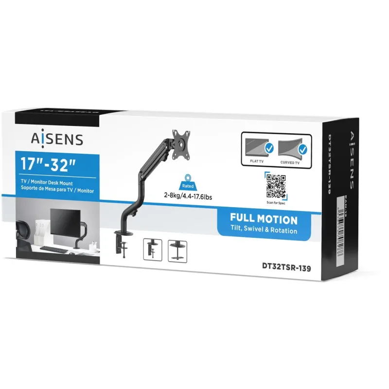 AISENS® – Soporte de mesa eco contrapeso giratorio e inclinable para monitor/TV (3 pivotes, 1 brazo) de 17”-32”