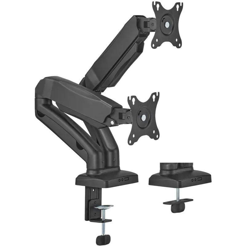 MONTAJE VERSÁTIL PARA PANTALLAS GRANDES Y PEQUEÑAS: ¡Hola, amantes de la tecnología y el orden! Hoy quiero presentarte una solución versátil y robusta para tu espacio de trabajo: un soporte de montaje que se adapta a tus necesidades con precisión quirúrgica. Este dispositivo permite el montaje de pantallas de entre 43,2 cm (17") y 81,3 cm (32"), con una capacidad de peso máxima de 18 kg, es decir, 9 kg por display si decides montar dos pantallas. Es compatible tanto con abrazaderas como con atornillado, lo que te proporciona la flexibilidad de elegir el método de instalación más conveniente para ti. Además, es ideal para televisores y soporta interfaces de montaje de 75 x 75 mm hasta 100 x 100 mm. ¡Adiós a los problemas de compatibilidad!