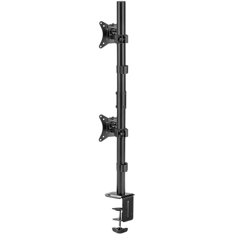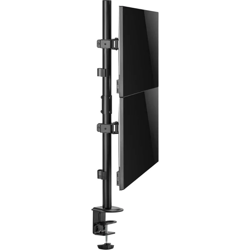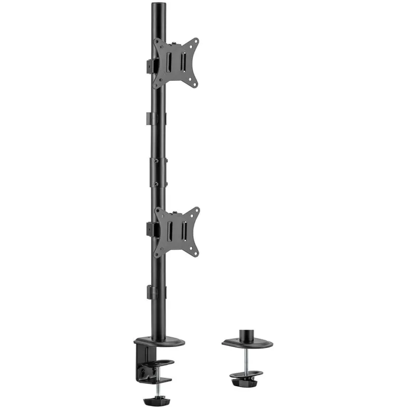 Este soporte de mesa para monitor/TV es ideal para pantallas de entre 43,2 cm (17") y 81,3 cm (32"), con una capacidad máxima de peso de 9 kg. Su sistema de montaje ofrece dos opciones: abrazadera o atornillado, lo que permite adaptarse a diferentes configuraciones de escritorio. Es compatible con interfaces de montaje de 75 x 75 mm y 100 x 100 mm, soportando hasta 2 pantallas. Este soporte es idóneo para televisores y ofrece una instalación segura tanto en escritorios de hasta 8,5 cm de grosor con abrazadera, como en mesas de hasta 4 cm de grosor con placa de soporte.