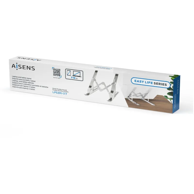 El AISENS LPS3M-177 es un soporte de sobremesa plegable para portátil o tablet que prioriza postura y movilidad: eleva la pantalla, reduce la inclinación de cuello y se guarda en poco espacio cuando cambias de mesa.