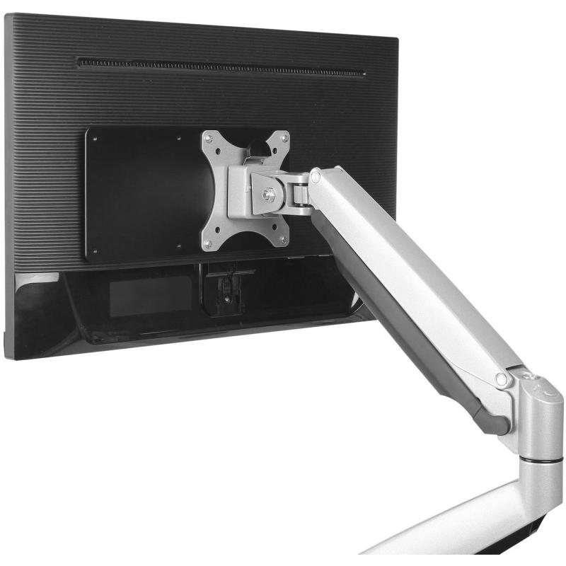 El soporte es compatible con interfaces de montaje VESA con dimensiones que van desde 75 x 75 mm hasta 100 x 100 mm, asegurando su versatilidad para diferentes dispositivos y configuraciones.