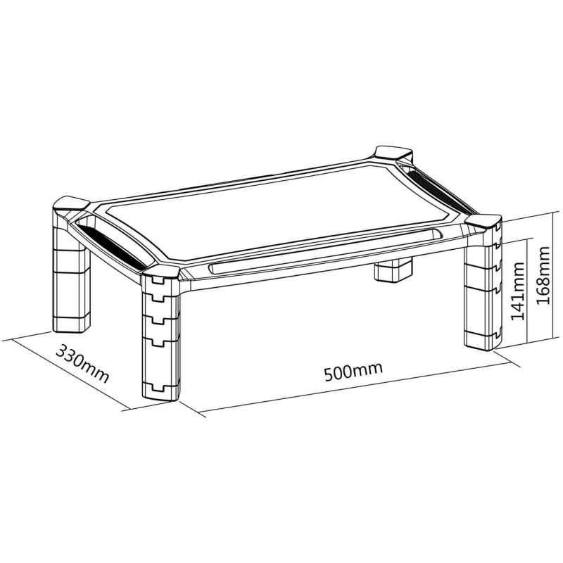 Construido con acrilonitrilo butadieno estireno (ABS), no solo es duradero sino que también presenta un elegante color negro que complementa cualquier estética de oficina. En términos de dimensiones, mide 500 mm de ancho, 300 mm de profundidad y 168 mm de altura, proporcionando una base estable y segura para su monitor. El paquete tiene unas dimensiones de 68 mm de ancho, 355 mm de profundidad y 529 mm de altura, con un volumen total de 12770,06 cm³ y un peso de 1,66 kg, lo que facilita su almacenamiento y transporte.