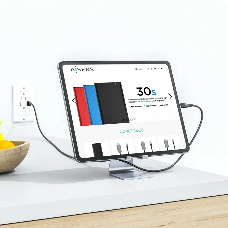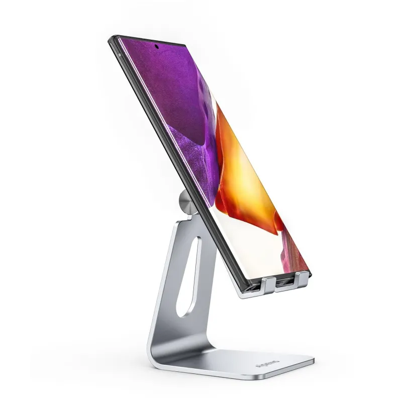 Este soporte pasivo es una solución práctica y elegante para mantener tu teléfono móvil, smartphone o tablet/UMPC en tu escritorio o cualquier entorno interior. Fabricado en aluminio de alta calidad y con un acabado en color plata, este soporte es duradero y estéticamente atractivo.