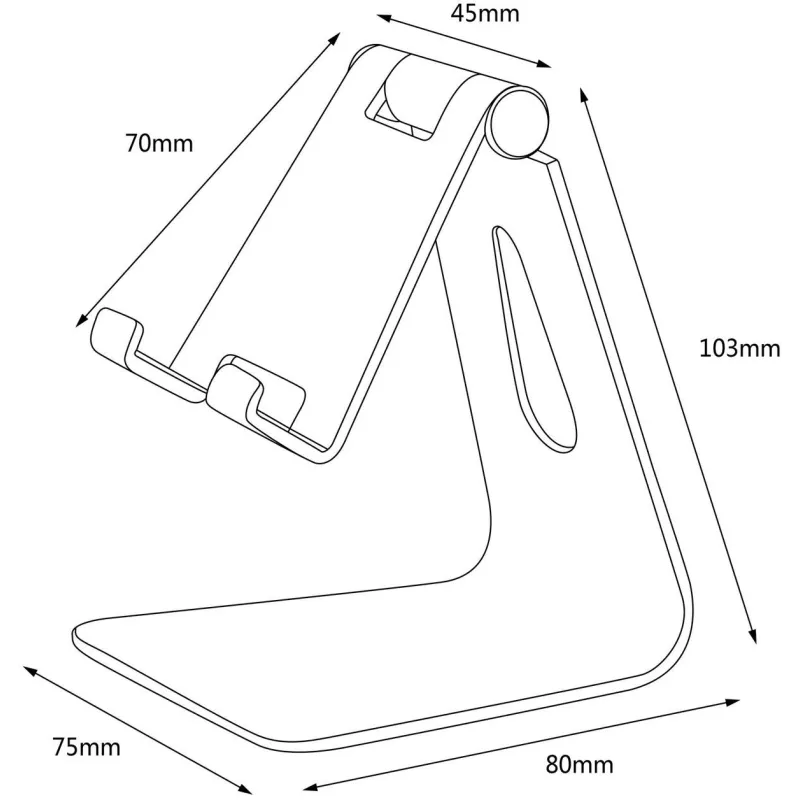 DIMENSIONES Y PORTABILIDAD: Con unas dimensiones de 75 mm de ancho, 80 mm de profundidad y 103 mm de altura, este soporte es compacto y fácil de manejar. Su diseño permite colocarlo cómodamente en cualquier escritorio sin ocupar mucho espacio, proporcionando estabilidad y soporte a tus dispositivos.