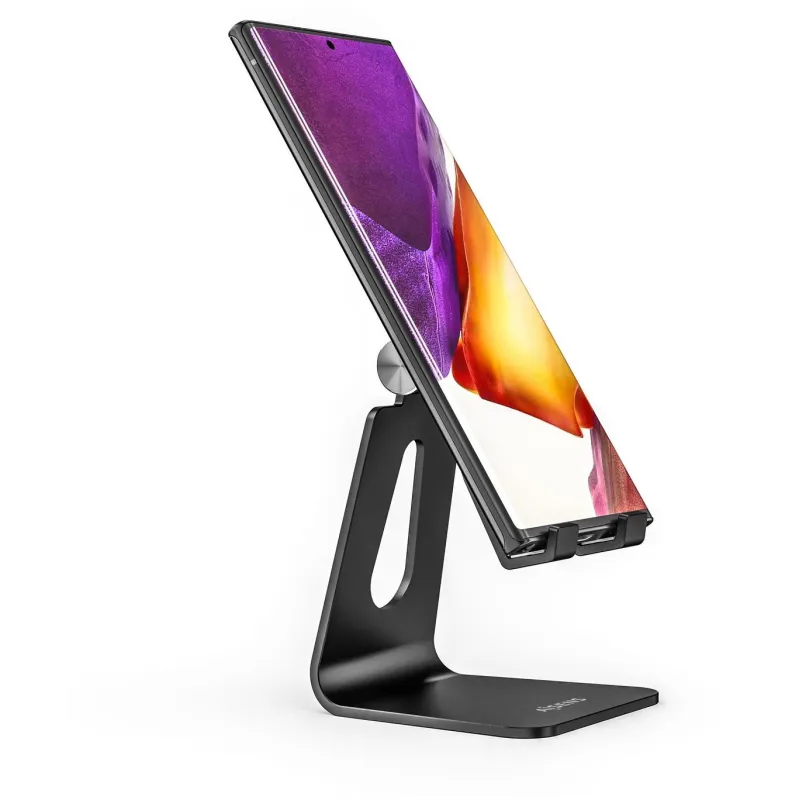 DISEÑO ELEGANTE Y FUNCIONAL: Este soporte pasivo es ideal para teléfonos móviles, smartphones, tabletas y UMPC, proporcionando una solución ergonómica y estilizada para uso en escritorio e interiores. Fabricado en aluminio de alta calidad con un elegante color negro, este soporte es robusto y duradero, ofreciendo una base segura y confiable para tus dispositivos.