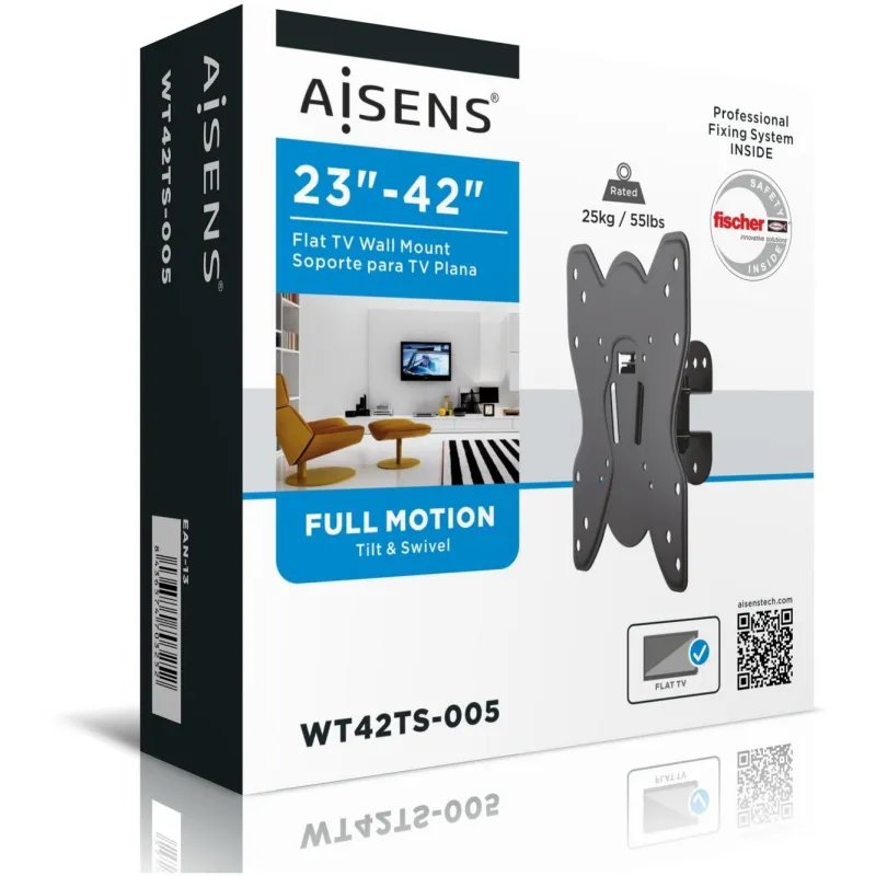 AISENS® – Soporte eco giratorio e inclinable para monitor/TV 25kg de 23”-42”. Fabricado con acero de alta resistencia y pintado con pintura electrostática para un acabado perfecto.