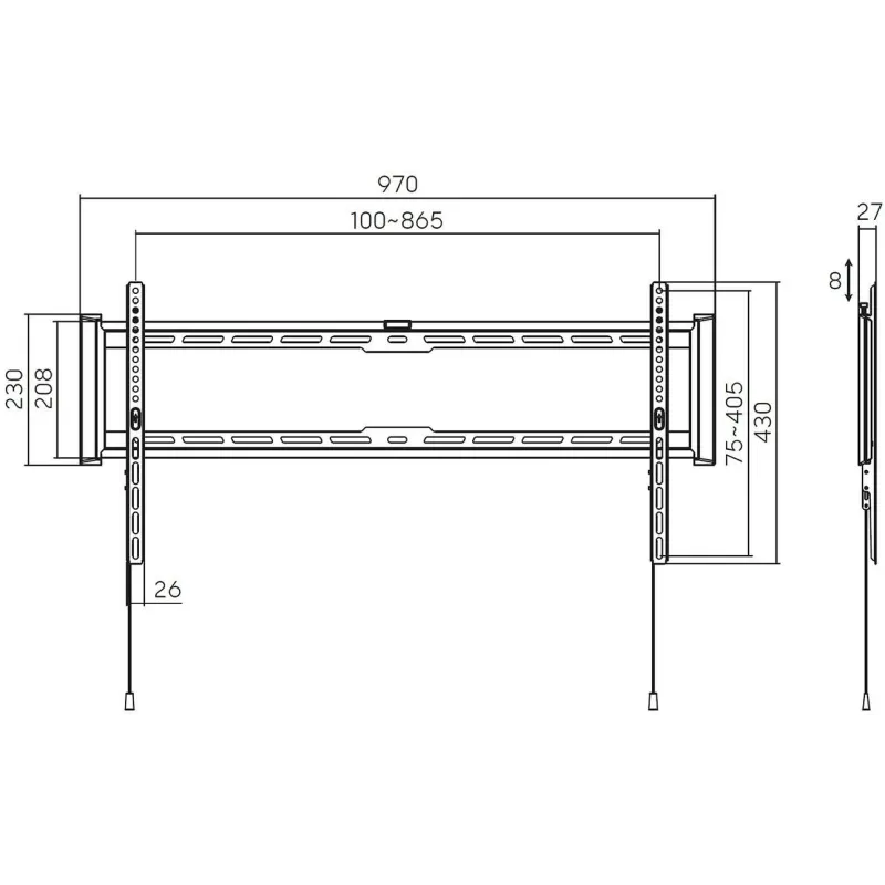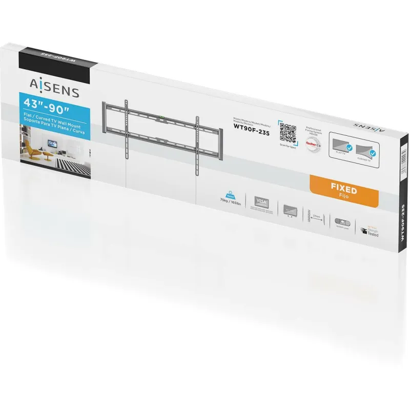 Soporte Aisens WT90F-235 con capacidad máxima de peso 75 kg, montaje en pared y compatibilidad VESA 800 x 400 mm para pantallas de hasta 90 pulgadas