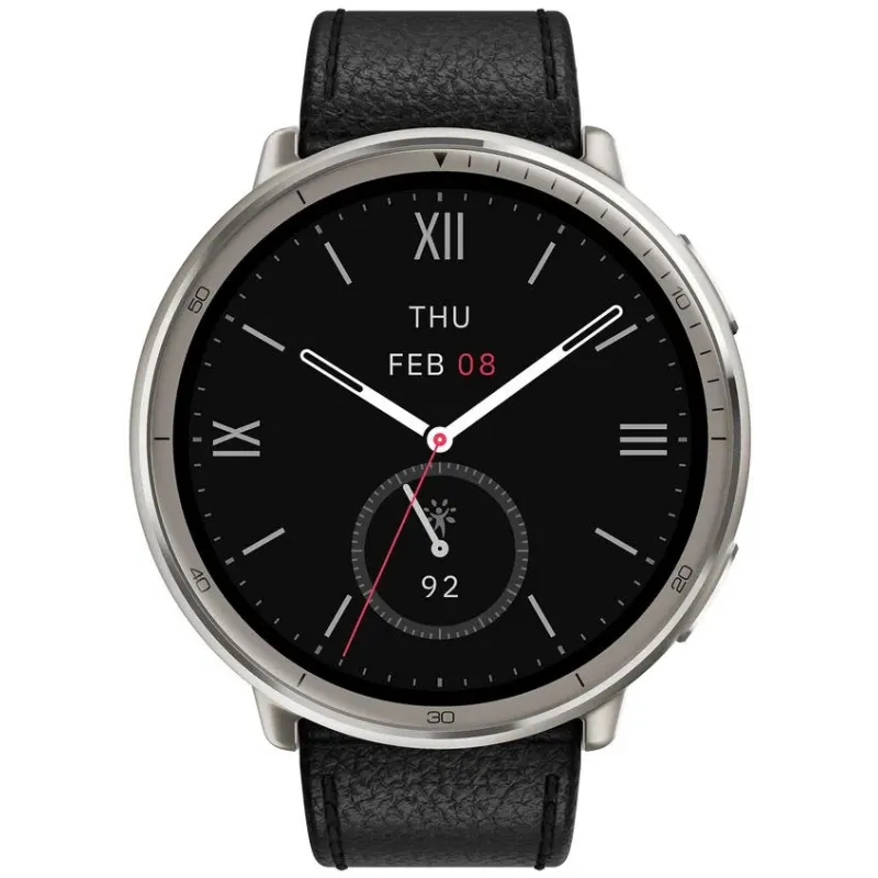 Este Smartwatch Amazfit Active 2 NFC destaca por su diseño elegante y su avanzada tecnología. Equipada con una pantalla AMOLED 1.32 pulgadas, ofrece una visualización nítida y a todo color, con una resolución de 466 x 466 píxeles y una densidad de 353 ppp. Esta pantalla táctil permite una navegación fluida y cómoda en cualquier situación. Su cuerpo fabricado en acero inoxidable, vidrio templado y polímero garantiza resistencia y durabilidad, mientras que la banda de cuero negro aporta un toque sofisticado. Compatible con Android e iOS, incorpora el sistema operativo Zepp OS, optimizado para ofrecer un rendimiento eficiente y funcionalidades inteligentes como control de música, notificaciones de llamadas y SMS, así como monitoreo de estrés, frecuencia cardíaca y calidad del sueño.