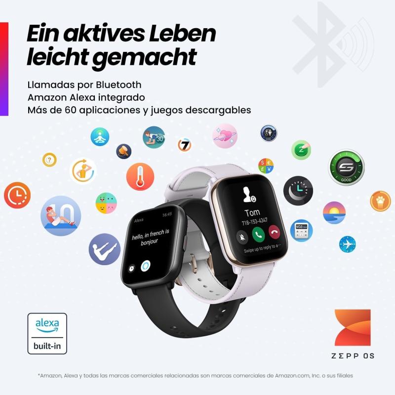 ZEPP OS 2.0 CENTRADO EN LA SALUD: Disfruta de una compatibilidad mejorada con smartphones iOS y Android, junto con una potente compatibilidad Bluetooth que permite al reloj conectarse a dispositivos de ejercicio como un cinturón de frecuencia cardiaca.