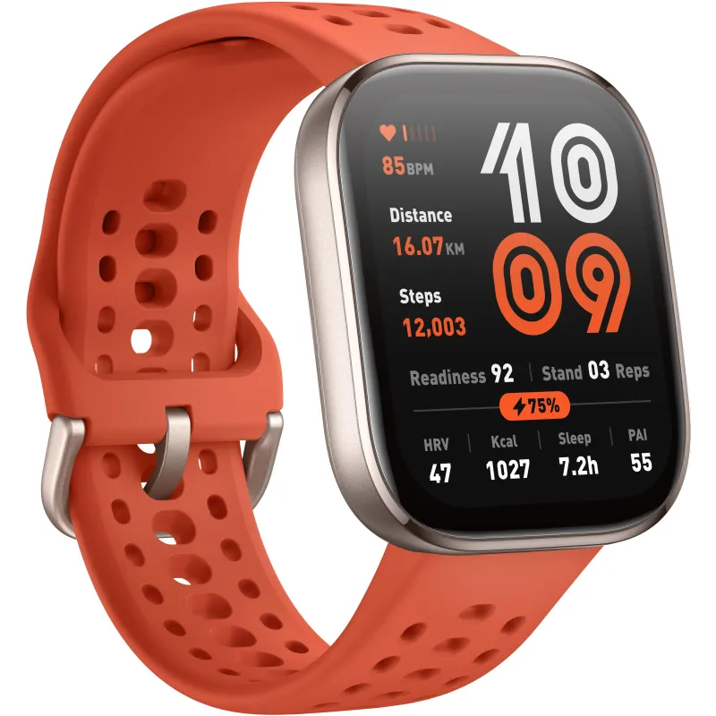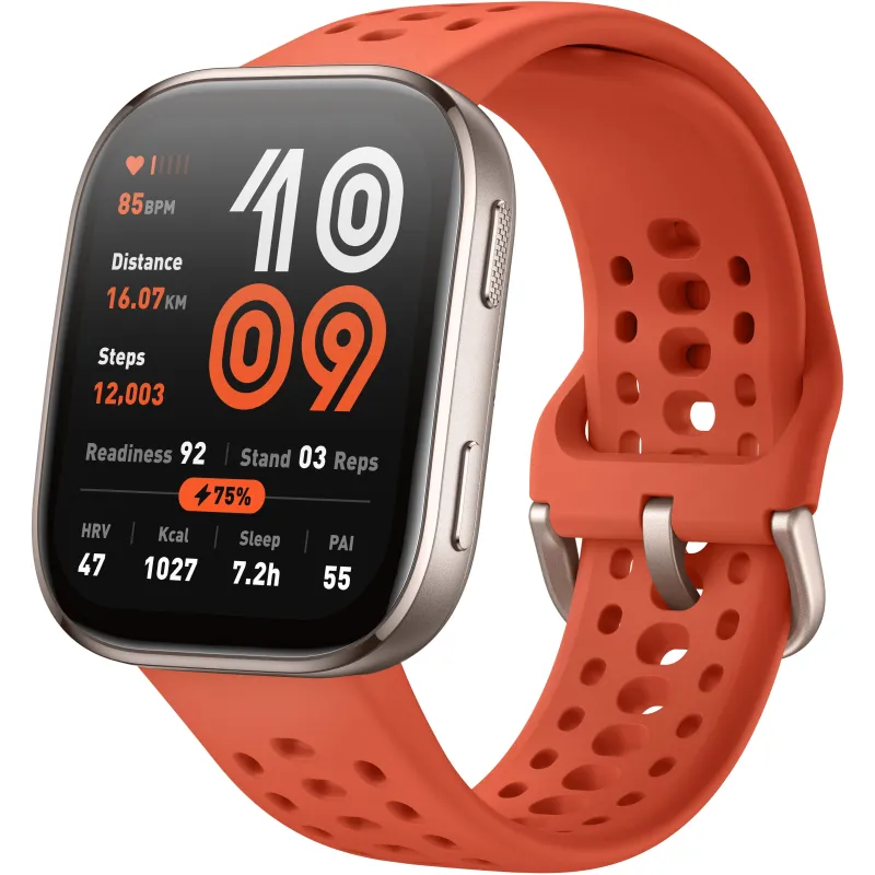 Smartwatch Amazfit Bip 6 Red con pantalla AMOLED 1.97 pulgadas, batería 340 mAh y sensores de salud, GPS integrado