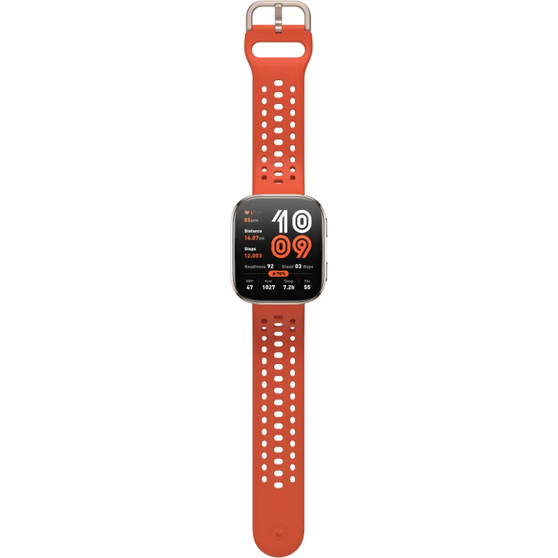 DISEÑO MODERNO Y FUNCIONAL PARA CUALQUIER ESTILO: El Smartwatch Amazfit Bip 6 Red destaca por su estética refinada y materiales resistentes. Su cuerpo de aluminio y plástico ofrece durabilidad sin renunciar a la ligereza, con solo 27,9 g de peso. La correa de silicona en color rojo, combinada con detalles dorados y cierre mediante hebilla, proporciona un ajuste cómodo y seguro para muñecas de 130 a 195 mm. Este diseño no solo es atractivo, sino también práctico, con una resistencia al agua de 5 ATM que permite su uso en actividades acuáticas cotidianas. El Smartwatch Amazfit Bip 6 Red es ideal para quienes buscan un reloj inteligente que combine estilo y funcionalidad.